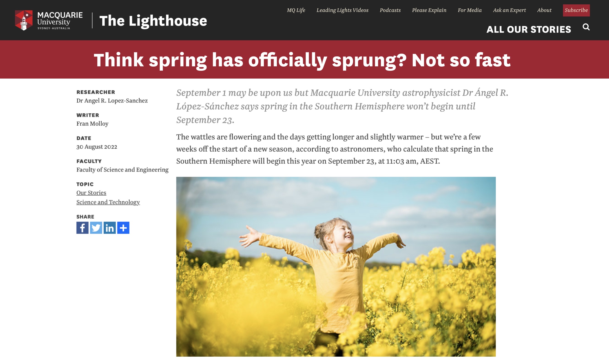 Last week I raised the issue during a meeting at the Faculty of Science and Engineering at Macquarie University (MQ). And with that Angie Kelly, Editor of MQ’s The Lighthouse, put me in contact with science journalist Fran Molloy to prepare this article: “Think spring has officially sprung? Not so fast“, published yesterday, Aug 31st,
