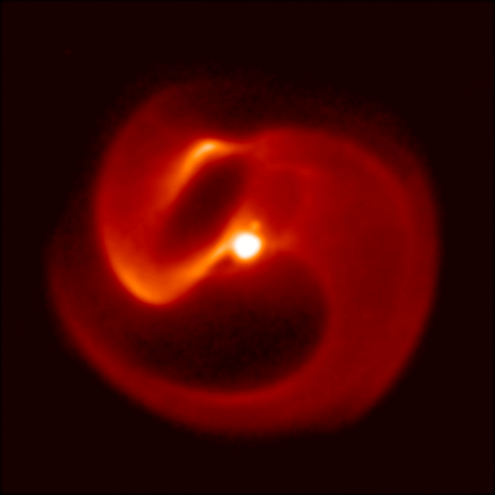 Image of Apep captured in the thermal infrared with the VISIR camera on the European Southern Observatory’s VLT telescope in Chile. Credit: Professor Peter Tuthill/ESO.