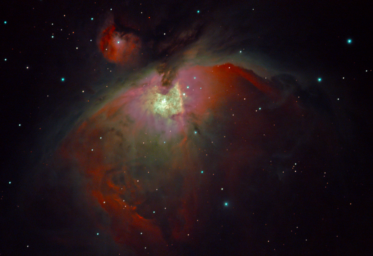 For avoiding saturating the brightest part of the nebula, only 10s exposures were taken, with a small “manual” (*) dithering pattern. 42 single frames were combined in each filter (7 minutes per filter).