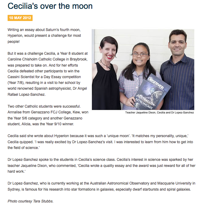 I’m happy to provide expert opinion and analysis on Astronomy and Astrophysics and related topics to the media. This includes not only the results from my own research in star-forming galaxies and the research conducted at the Australian Astronomical Optics and the Department of Physics and Astronomy of the Macquarie University, but also science press releases from other institutions/universities, general questions about Astronomy, details of specific astronomical phenomena such as eclipses, comets or meteor showers, and science policy.