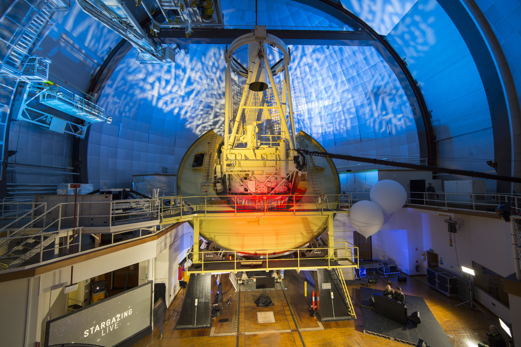 The AAT is ready for #StargazingABC. Hosts Julia Zemiro and Prof Brian Cox are sit in the piano, while Brian still rehearsing. Credit: Ángel R. López-Sánchez.