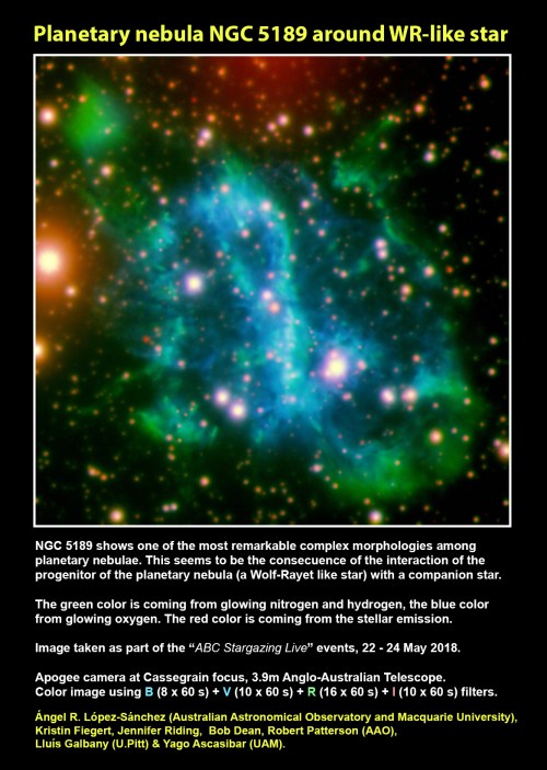 3. I spent some of my scheduled time at the Anglo-Australian Telescope to prepare a nice, new image of a beautiful astronomy object, that was later discussed during the show. It was the planetary nebula NGC 5189, for which I provided extra information in the previous post.