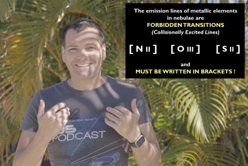 Do you know how profesional astrophysicists and amateur astronomers get vibrant colour images of nebulae? In this video I provide insights of the Physics behind these images. I emphasise why the ionic transitions of metallic elements (i.e., any element that is not hydrogen or helium) in nebulae must be written with brackets, as they are not recombination lines but collisional excited lines, that is, a kind of forbidden lines that only appear in extreme low-density gases because of the collision of ions with free electrons in the gas.