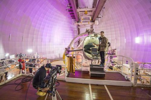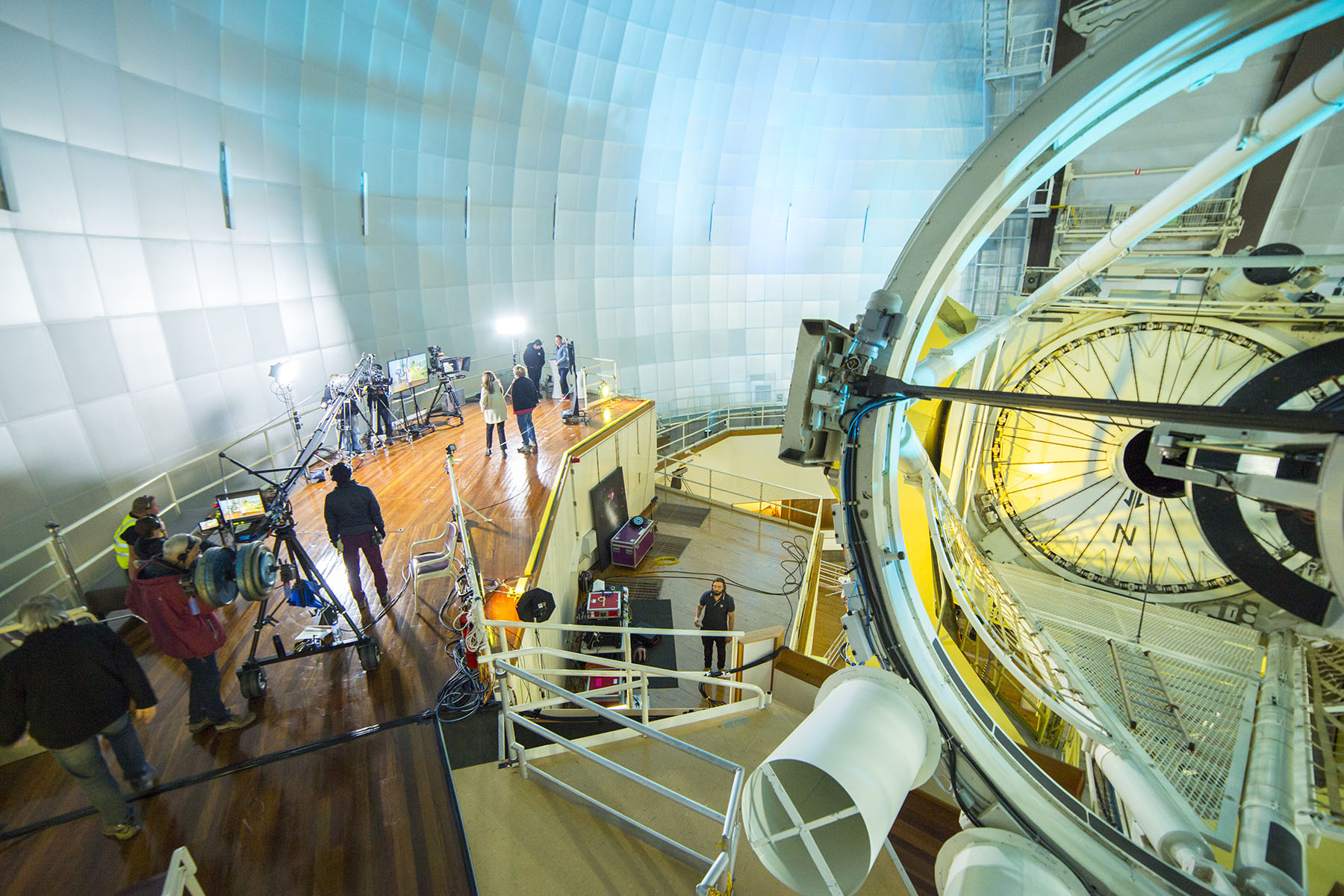 The AAT is ready for #StargazingABC. Hosts Julia Zemiro and Prof Brian Cox are sit in the piano, while Brian still rehearsing. Credit: Ángel R. López-Sánchez.